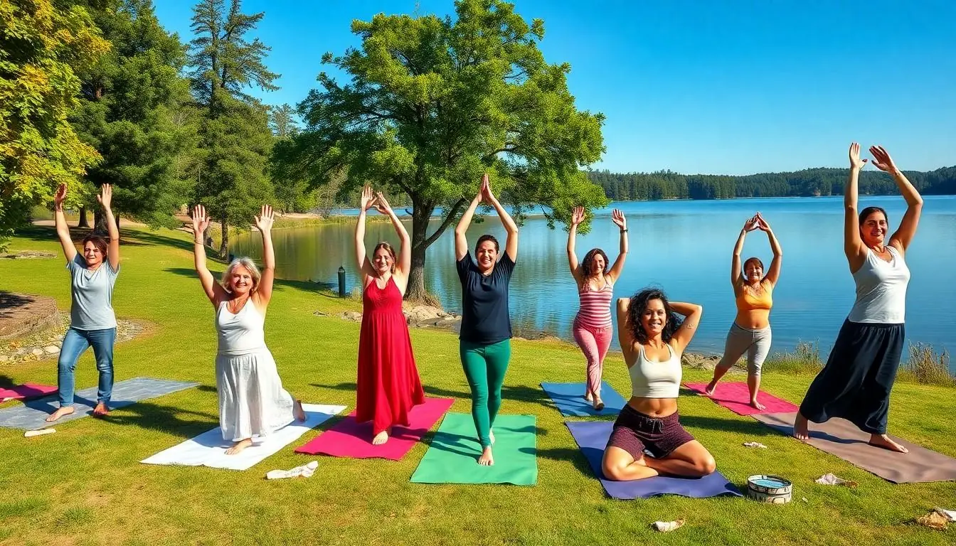 Tailored fitness programs cater to various skill levels. Attendees engage in outdoor yoga sessions that promote flexibility and stability. Strength training classes utilize natural elements, enhancing workouts with body-weight exercises. Water-based activities such as kayaking and paddleboarding offer fun options that improve cardiovascular health. Group fitness classes create a supportive atmosphere. Members gain motivation from community engagement while benefiting from expert guidance.